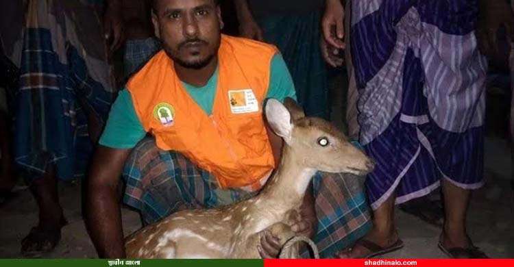 আজাদুল হক, বাগেরহাট: বাগেরহাটের শরনখোলায় পার্শ্ববর্তী সুন্দরবন থেকে নদী সাঁতরে লোকালয়ে আসা দুইটি চিত্রা হরিণ বনে ফিরিয়ে দিয়েছে গ্রামবাসী।