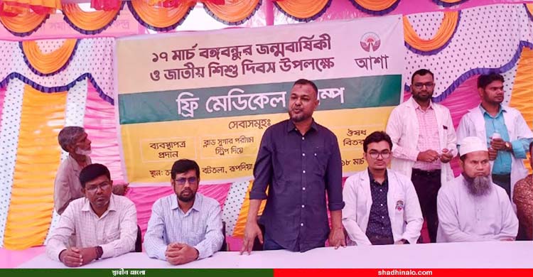 এর আগে ফ্রী মেডিকেল ক্যম্পের উদ্বোধন করেন, আশা সিনিয়ার ডিস্ট্রিক ম্যানেজার (এসডিএম) মোমিন আলী। উপস্থিত ছিলেন, সিনিয়র ডিস্ট্রিক ম্যানেজার (ডিএম) জামাল হোসেন, ডা.হুমায়ুন কবীর, ডিএমএফ ইদ্রিস আলী খান, ফিজিওথেরাপিস্ট সুচিতা সাহা দৃষ্টি প্রমুখ।