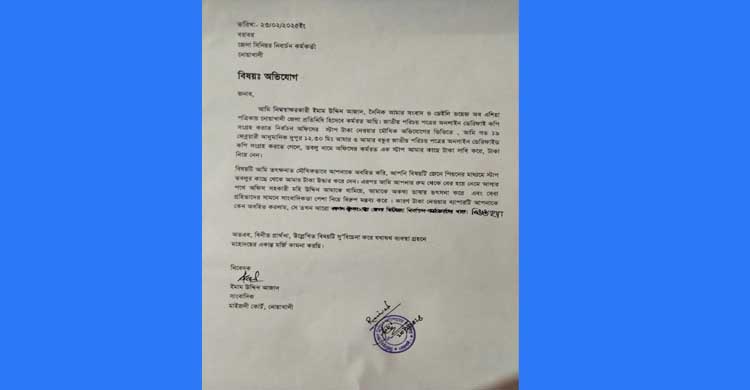 লিখিত অভিযোগ সূত্রে জানা যায়, নোয়াখালী জেলা নির্বাচন অফিসে জাতীয় পরিচয়পত্রের অনলাইন ভেরিফাইড এবং অন্যন্য সেবা গ্রহণের জন্য গেলে সেবা গ্রহিতাদের কাছ থেকে অফিসের কিছু কর্মচারী অনৈতিকভাবে টাকা নেন। সত্যতা জানতে দৈনিক আমার সংবাদের নোয়াখালী প্রতিনিধি ইমাম উদ্দিন আজাদ ১৯ ফেব্রুয়ারি দুপুর সাড়ে ১২টার দিকে নিজের এবং তার বন্ধুর জাতীয় পরিচয়পত্রের অনলাইন ভেরিফাইড কপি সংগ্রহের জন্য গেলে হিসাব সহকারী টবলু সূত্রধর সাংবাদিকের কাছ থেকে টাকা নেন। এ বিষয়ে জেলা সিনিয়র নির্বাচন কর্মকর্তা নওয়াফুল ইসলামকে জানালে তিনি ঘুষের টাকাগুলো উদ্ধার করে দেন। পরবর্তীতে তার রুম থেকে বের হয়ে দ্বিতীয় তলায় উঠছে জেলা নির্বাচন অফিসের উচ্চমান সহকারী মোহাম্মদ মহিউদ্দিন সাংবাদিক আজাদকে থামিয়ে অকথ্য ভাষায় ভর্ৎসনা করে।