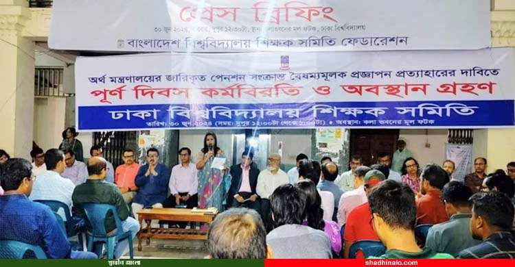 রবিবার (৩০ জুন) ঢাকা বিশ্ববিদ্যালয়ের কলাভবন ফটকে আয়োজিত এক সংবাদ সম্মেলনে এ ঘোষণা দেন বাংলাদেশ বিশ্ববিদ্যালয় শিক্ষক সমিতি ফেডারেশনের মহাসচিব অধ্যাপক ড. নিজামুল হক ভূঁইয়া।
