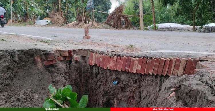 কাকিনা-রংপুর সড়কে ধস, দুর্ঘটনার আশঙ্কা