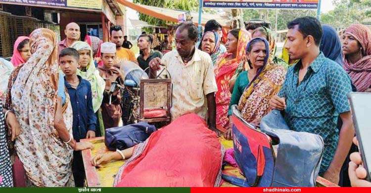 এ ঘটনায় নিহতের স্বামী মিলন গোলদার ও তাদের শিশু কন্যা এবং মোটরসাইকেল চালক আহত হয়েছে।