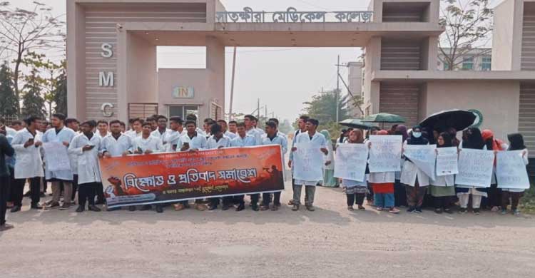 সাতক্ষীরা মেডিকেল কলেজের শিক্ষার্থীদের বিক্ষোভ মিছিল ও প্রতিবাদ সমাবেশ