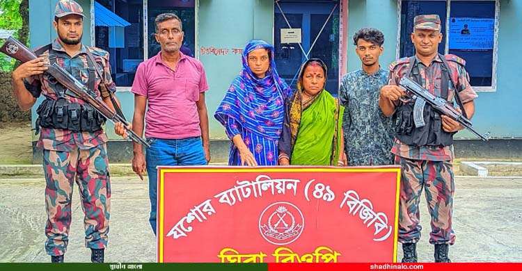 শনিবার (১৮ মে) ঘিবা মাঠ নামক স্থান হতে অবৈধভাবে বাংলাদেশ থেকে ভারতে যাওয়ার প্রাক্কালে যশোর ব্যাটালিয়নের (৪৯ বিজিবি) অধীনস্থ ঘিবা বিওপির একটি টহল দল বাংলাদেশি নাগরিক তিনজন (মহিলা-দুইজন, পুরুষ-একজন) এবং মিয়ানমার নাগরিক একজন (পুরুষ-১) মোট চারজন আটক করেন।