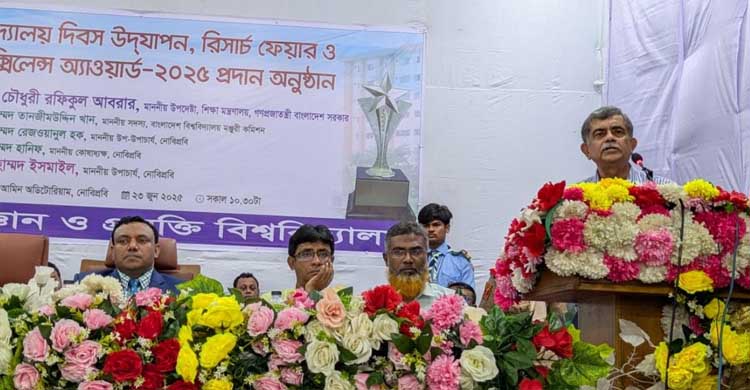 সোমবার (২৩ জুন) দুপুরে নোয়াখালী বিজ্ঞান ও প্রযুক্তি বিশ্ববিদ্যালয়ের (নোবিপ্রবি) ১৯তম বিশ্ববিদ্যালয় দিবস উদযাপন, রিসার্চ ফেয়ার এবং একাডেমিক এক্সিলেন্স অ্যাওয়ার্ড অনুষ্ঠানে প্রধান অতিথির বক্তব্যে তিনি এই মন্তব্য করেন।
