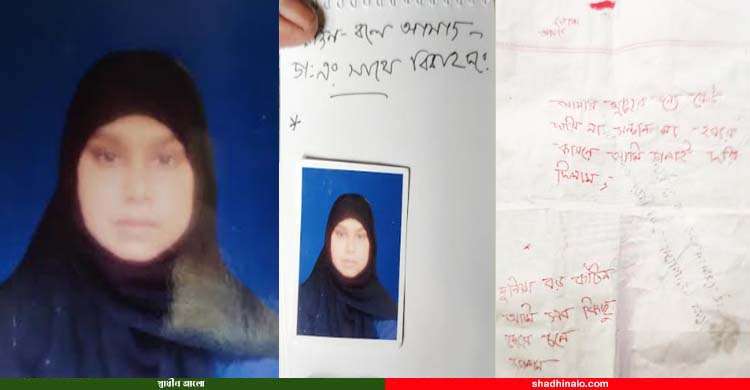নারীটির হাতের তালু ও কাগজে লাল কালিতে লেখা ছিলো ‘আমার মৃত্যুর জন্য কেউ দায়ী না সন্তান না হবার কারনে আমি গলাই দড়ি দিলাম,’ একই কাগজের অন্য প্যারায় লাল কালিতে লেখা, ‘দুনিয়া বড় কঠিন আমি সব কিছু ছেরে চলে গেলাম’। কাগজটির অপর পিঠে কালো কালি দিয়ে লেখা, ‘এই তোমার এই নাক বুছিরে কেন ভালোবাসো কেনো বিয়ে করতে চাও।’