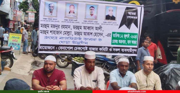 মিলন হোসেন, বেনাপোল (যশোর) প্রতিনিধি: যশোরের বেনাপোল চেকপোস্ট বাজারের ব্যবসায়ী মরহুম মজনুর রহমান, মরহুম আব্বাস আলী, মরহুম শাহাজান মোল্লা ও মরহুম আকাশ হোসেনের রুহের মাগফেরাত কামনায় শুক্রবার বিকালে চেকপোস্ট বাজারে দোয়া অনুষ্ঠান করা হয়।