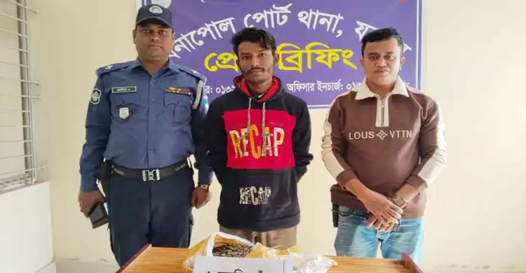 বেনাপোল পোর্টথানার ভারপ্রাপ্ত কর্মকর্তা (ওসি) রাসেল মিয়া জানান, গোপন সংবাদের ভিত্তিতে অভিযান পরিচালনা করে গাঁজাসহ একজনকে আটক করা হয়েছে এবং মামলা প্রক্রিয়াধীন ।