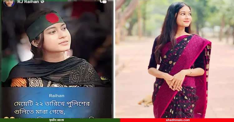 সহিংসতাকে কেন্দ্র করে এক নারী শিক্ষার্থীর ছবি প্রকাশ করে সামাজিক যোগাযোগমাধ্যমে দাবি করা হয়েছে, মেয়েটি গত ২২ জুলাই পুলিশের গুলিতে মারা গেছেন। ওই শিক্ষার্থীর নাম আনিকা তাসনিম।