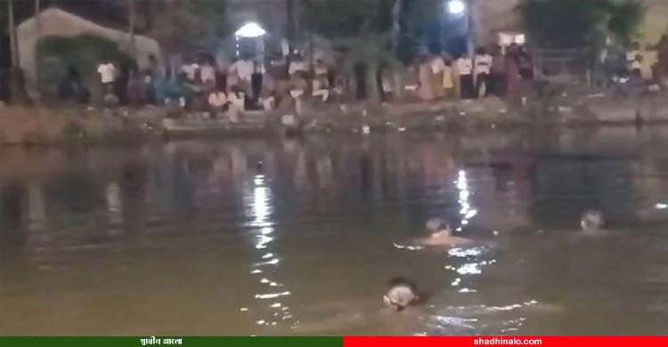 স্থানীয়দের অভিযোগ মদখেয়ে মাতাল অবস্থায় ছেলেকে সাঁতার শেখাতে নেমেছিলেন বাবা।
