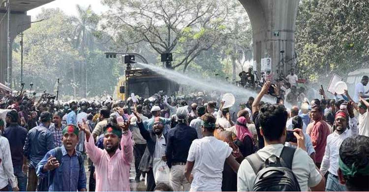 পরে বাধা উপেক্ষা করে তারা সামনের দিকে যেতে চাইলে পুলিশ তাদের ওপর জলকামান নিক্ষেপ করে। তাতেও ফেরানো যায়নি বেসরকারি প্রাথমিক বিদ্যালয় শিক্ষকদের। পরে পুলিশ বাধ্য হয়ে তাদের ওপর লাঠিচার্জ করে। এই ঘটনায় অন্তত পাঁচজন শিক্ষক আহত হয়েছেন।
