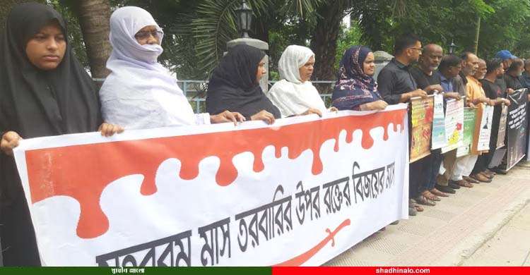মানববন্ধনে বক্তারা বলেন, মহানবী (সা.) প্রাণপ্রিয় নাতি ইমাম হুসাইন ও তার অসহায় পরিবারের এবং সঙ্গী সাথীদের নির্মম ও হৃদয় বিদায়ক শাহাদতের মাস মহররম মাস।