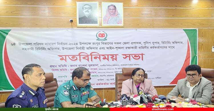রবিবার (৩১ মার্চ) রংপুর জেলা প্রশাসক সম্মেলন কক্ষে উপজেলা পরিষদ নির্বাচন উপলক্ষে রংপুর বিভাগের সকল জেলার জেলা প্রশাসক, পুলিশ সুপার, রিটার্নিং অফিসার, সহকারী রিটার্নিং অফিসার, উপজেলা নির্বাহী কর্মকর্তা ও আইন শৃঙ্খলা বাহিনীর কর্মকর্তাদের সাথে মতবিনিময় সভায় প্রধান অতিথির বক্তব্যে তিনি এসব কথা বলেন।