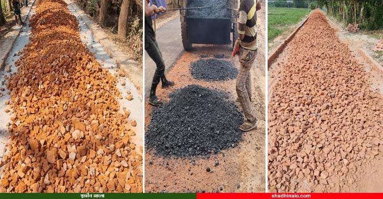 ঠিকাদার মাওলা বলেন, একটি গাড়ির খোয়া ভুলে ইট ভাটা থেকে দেয়া হয়। এ ছাড়া পুরো সড়কে ভালো ইটের খোয়া ব্যবহার করা হয়।
